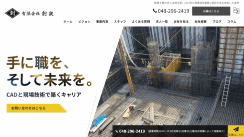 有限会社創鉄は現在、事業拡大を目的とした積極的な人材採用と若手職人の育成に力を入れています。幅広い世代が活躍する現場環境の中で、長期キャリア形成や人材育成プログラムを通じて次世代の技術者を育成し、業界全体の発展に貢献しています。 従業員が「頑張りたい」「スキルアップを目指したい」という意欲を持てるよう、能力に応じた適正な処遇と福利厚生の充実を図っています。頑張った分だけ待遇に反映される評価システムにより、仕事もプライベートも充実した働き方を実現し、会社としての更なる発展を目指して従業員一同と共に歩み続けています。