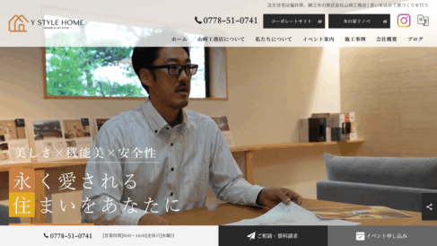 モデルハウスの展示会や完成見学会などの各種イベントを随時開催し、インターネットで来場体験ができるバーチャル展示会も用意しています。日々の出来事や施工事例などをブログで積極的に発信し、業界にまつわる内容や施工関連の情報もコラムとして掲載することで、家づくりに役立つ様々な情報を提供しています。山崎工務店 新築・リノベ・リフォームは、充実したサポート体制でお客様を支えています。