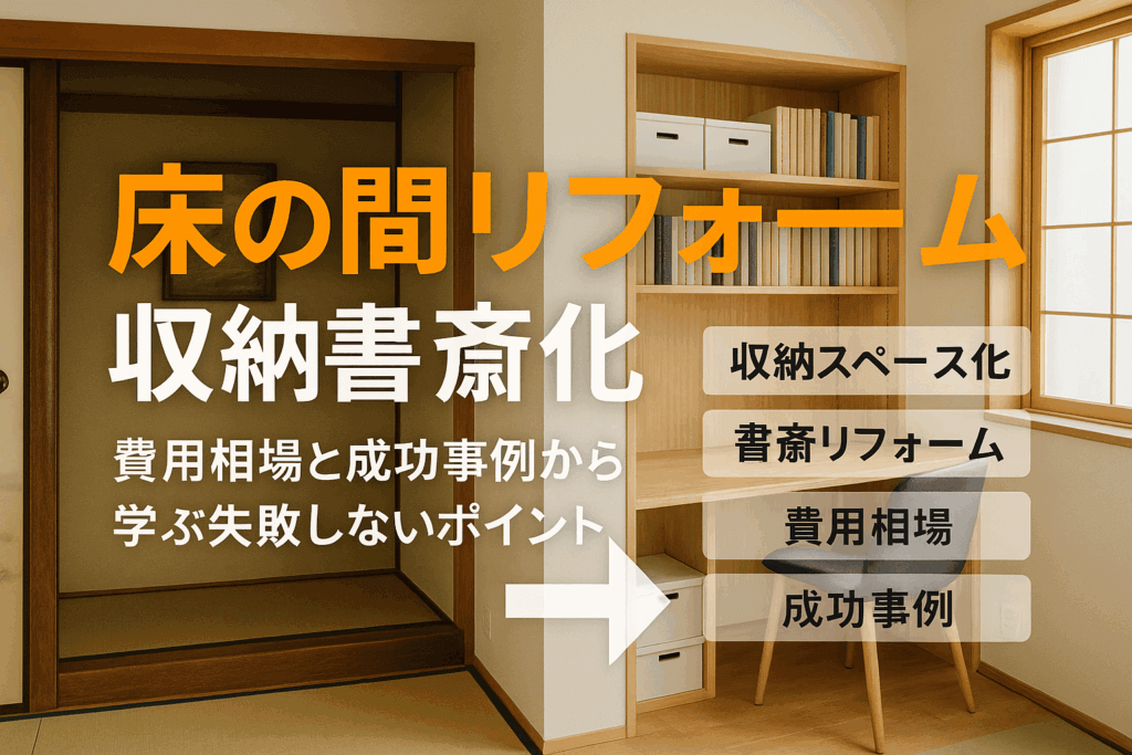 和室の顔だった床の間、使い道に迷っていませんか?「収納を増やしたい」「在宅ワークで書斎が欲しい」「トイレを増設したい」——そんな悩みに実現可能な選択肢を、費用相場と工期の目安つきで整理します。国交省の住宅リフォーム実例や業界標準の単価を参照し、現実的な判断材料だけを厳選しました。